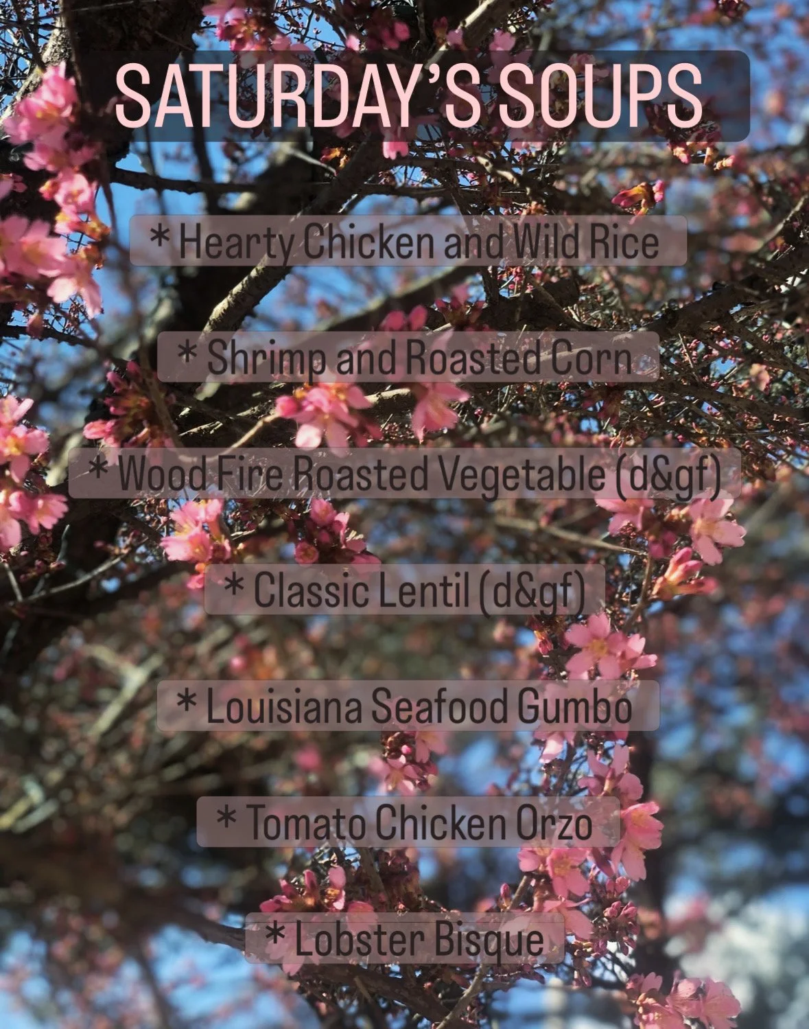 Seafood Soup Pricing: Cup - $5.49,Bowl - $7.49,Quart - $14.49